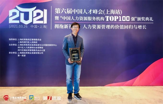 3月26日,由上海虹桥商务区管理委员会、上海市闵行区人民政府指导,上海虹桥商务区投资促进与公共服务事务中心、闵行区人力资源和社会保障局、闵行区南虹桥管理委员会办公室主办,上海南虹桥商业发展有限公司、第一资源承办的2021第六届中国人才峰会(上海站)在沪顺利举行。现场汇聚各级政府领导、行业协会、专家大咖及企事业单位高管,共同探讨人力资源管理及人力资源服务业发展的洞察与趋势研判,分享先进的人力资源管理理念与实践。同时,峰会上发布了“中国人力资源服务机构TOP100强”,科锐国际荣登总榜单第五位,CEO李跃章先生受邀出席颁奖盛典并做主题分享。