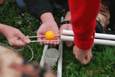 两根塑料管+两条短绳+两根塑料管+两条短绳……组成了一条“跑道”,