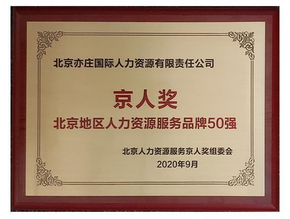 亦庄国际人力获评“2020北京地区人力资源服务品牌50强”