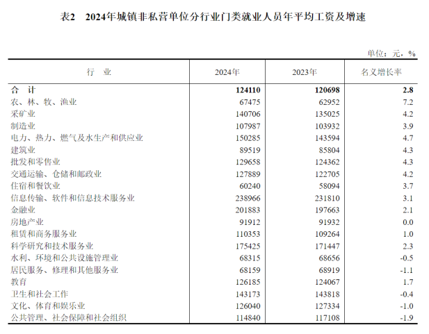 近日,国家统计局发布了2024年城镇单位【1】就业人员年平均工资情况。