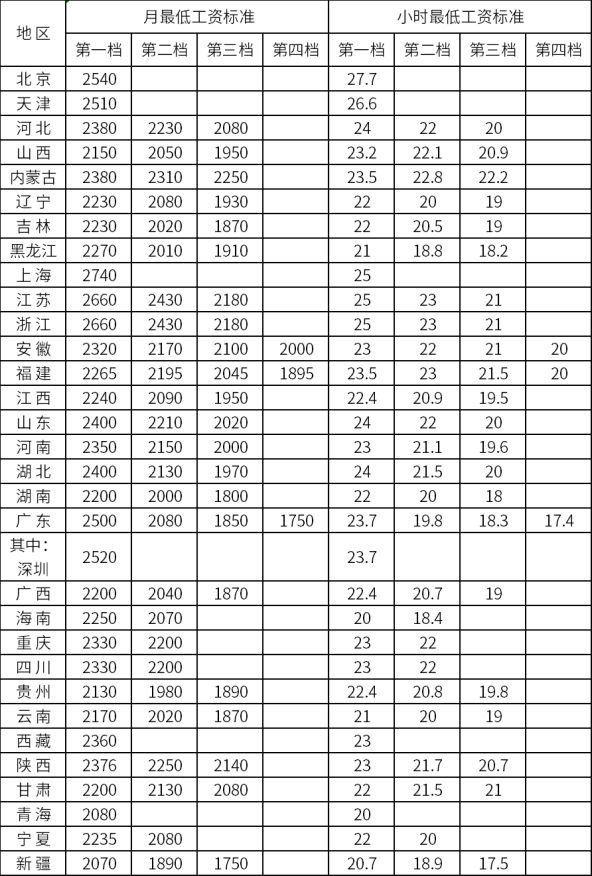 从小时最低工资标准来看,北京27.7元的标准为全国最高。