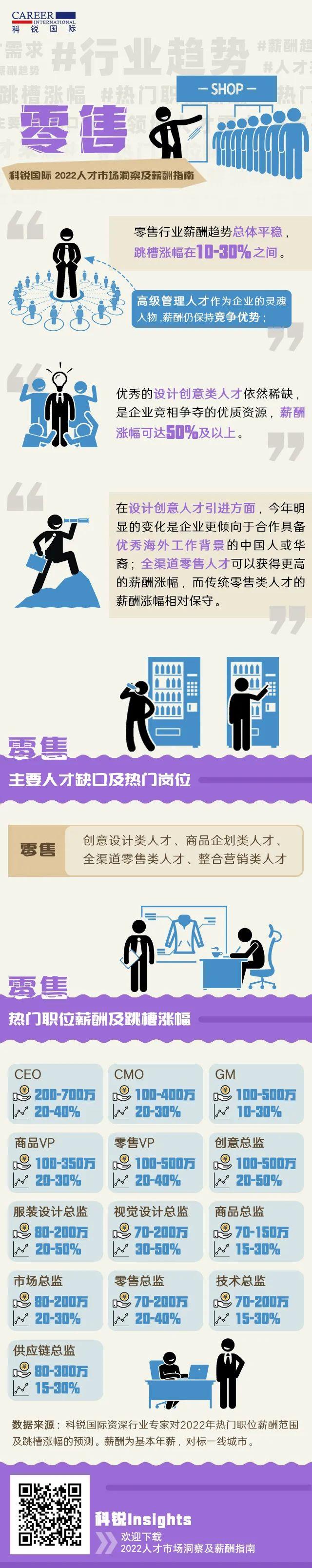 从人才需求迫切度来看,设计创意类人才仍然是众多企业最为看重的人才之一,并不惜重金到全球知名品牌当中吸引优秀设计人才,要求高、招聘周期长、可遇不可求也是这类岗位的特点。在国货品牌崛起的大势下,零售行业正焕发新的生机,这就要求企业需要持续提升产品力,根据目标客群喜好和特点不断创意创新从而实现客户深度绑定。随着中国经济的迅速崛起,越来越多的海归设计人才选择回国发展,可以预估未来几年会成长起来一大批有创意、有思想、有梦想的设计人才投入中国品牌、助力中国品牌、成就中国品牌。