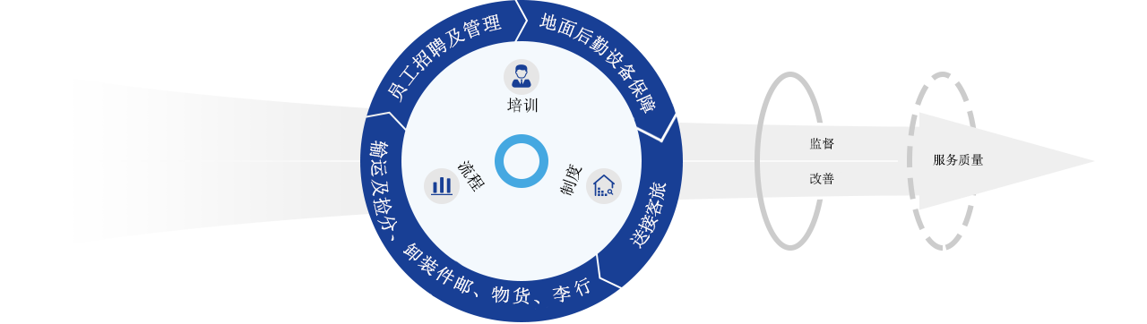 地面工作人员招聘、管理及调度、地面后勤设备运行保障、服务质量保障……随着航空业的不断发展,机场地面后勤管理服务要求不断提高,兴航国际针对客户需求,可承担机场地面后勤管理工作,并提供安全、规范、优质的站坪服务。